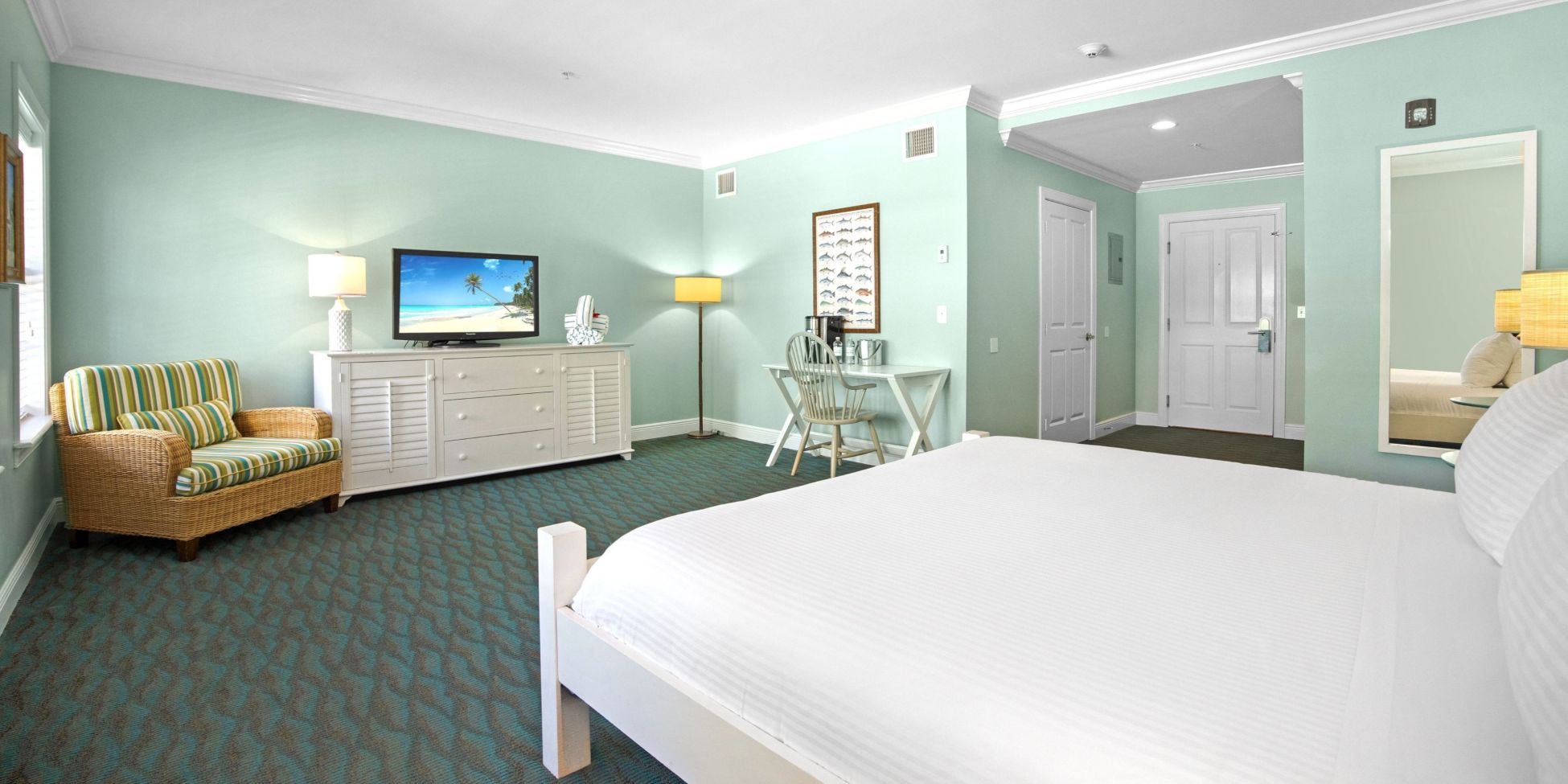 Enjoy upscale amenities, luxurious bedding, coastal-inspired décor, and incredible views of our paradise — all from the comfort of your room.